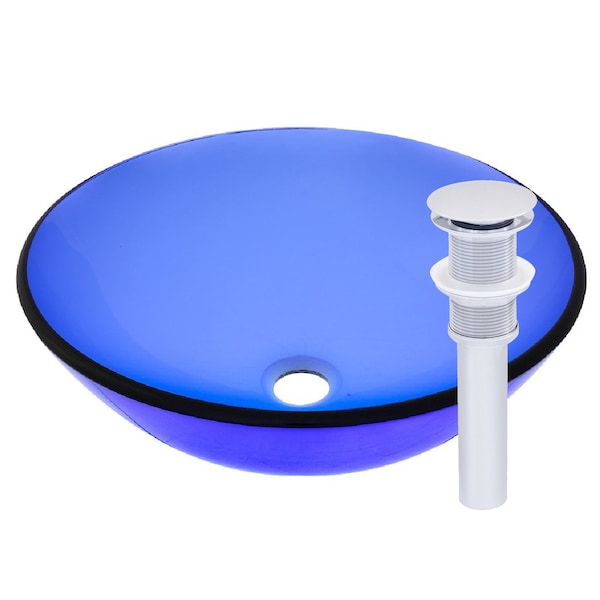 Combine quality and design with a unique clear blue glass vessel from Novatto. As an industry leader, Novatto uses advanced technology to produce beautiful glass vessel sinks with unmatched structural integrity and longevity. Constructed of thick 1/2-inch high tempered clear glass, Blu will add a punch of bold blue color to your room. Tempered glass cannot be compared to everyday synthetic porcelain and ceramics. Internal testing has found these vessels to be very durable and forgiving. Made with the highest standards of quality and creative design, Novatto sinks add art and function to any decor at an affordable price. Blu has a standard 1.75-inch drain opening. The set includes a chrome pop-up drain and matching mounting ring.