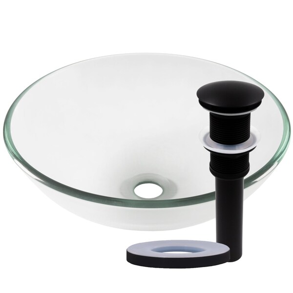 Combine quality and design with a unique clear glass vessel from Novatto. As an industry leader, Novatto uses advanced technology to produce beautiful glass vessel sinks with unmatched structural integrity and longevity. Constructed of thick 1/2-inch high tempered clear glass, the round Bonificare vessel sink has the look of classic understated elegance. Tempered glass cannot be compared to everyday synthetic porcelain and ceramics. Internal testing has found these vessels to be very durable and forgiving. Items such as toothbrushes or small jewelry should not scratch the surface. Made with the highest standards of quality and creative design, Novatto sinks add art and function to any decor at an affordable price. Bonificare has a standard 1.75-inch drain opening. The set includes a matte black pop-up drain and matching mounting ring.