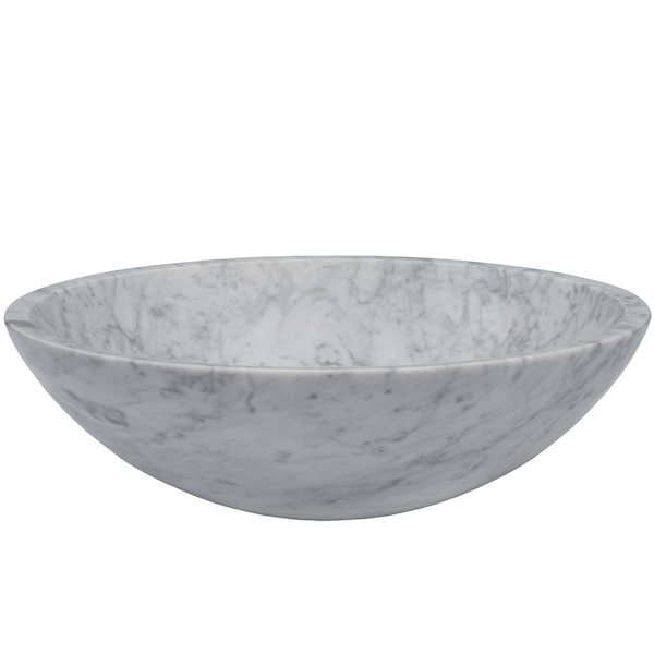 With nature as both guide and inspiration, Novatto's white Carrara marble vessel will add character and charm specific to your bath. Our marble vessel sinks come from around the world to provide you with a one-of-a-kind masterpiece. Natural stone cannot be compared to everyday synthetic porcelain and ceramics. Honed and hand polished to perfection, each 17-inch vessel is beautifully unique in white with gray veining. Because marble is formed by Mother Nature, each sink will vary slightly in color and veining. These sinks are designed for above-counter installation. They have a 1.75-inch drain opening for standard U.S. plumbing connections. With thick 5/8-inch sidewalls these sinks weigh roughly 25 pounds. Included with the sink is Novatto's matte black umbrella drain (UPD-MB), constructed of solid brass for strength and durability.