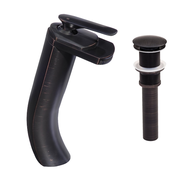 Oil Rubbed Bronze Waterfall Vessel Faucet, Pop-up Drain and Mounting Ring