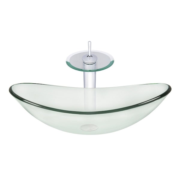 CHIARO Glass Vessel Bathroom Sink Set, Chrome/Clear Glass
