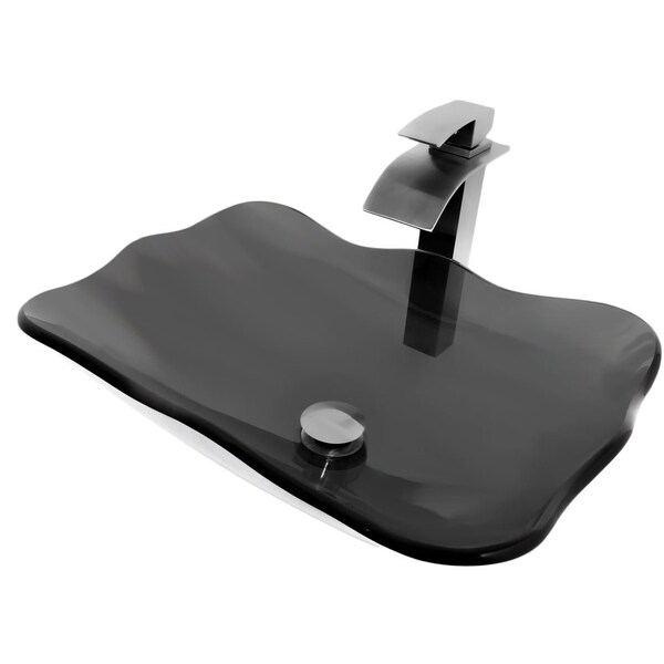 Upgrade the bath with Novatto's clear grey elegant glass vessel and matching gun metal waterfall faucet. This clear grey glass vessel set is a great way to harmonize your decor by unifying the color and textural design of the bathroom. This vessel faucet beautifully compliments the style lines of the sink. Each glass sink and faucet features its own beauty of color, structural character and texture, adding a sense of purity, elegance and distinctive look to any design. This sink has a standard 1.75-inch drain opening on center with no overflow. A 1.5-inch hole is needed for the faucet installation.