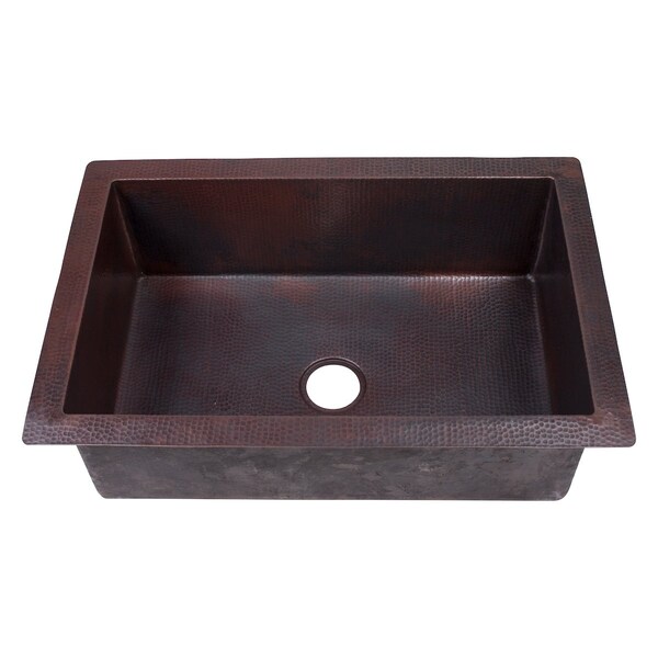 The classic Guadalajara is hand-hammered from 100% recycled copper by our master artisans. Through years of skill and experience passed down from previous generations, the end result is a one-of-a-kind work of art. Made from 16 gauge copper, this luxurious single large sink has a warm antique finish and allows for either drop-in or undermount installation. A spacious 28" x 17" interior makes washing any dishes a breeze. The basin has a 3.5-inch drain for standard U.S. plumbing connections. Due to the handcrafted nature of this product, it will vary in appearance, finish, texture, hammering and other details. Dimensions may vary up to 1/2". We strongly suggest you receive the actual piece before making any installation cuts.