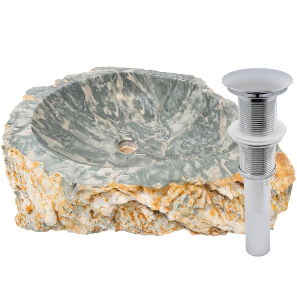 Even more beautiful in person, Novatto's natural cobblestone vessels are sure to add a touch of charm to your bath. These natural cobblestone vessels come from around the world, giving you a one-of-a-kind bath masterpiece. Natural stone cannot be compared to everyday synthetic porcelain and ceramics. Honed and hand polished to perfection, each irregular vessel is beautifully unique. Since these sinks are from Mother Nature, each sink will vary slightly in color, shape and size. These sinks are constructed for above-counter installation. These sinks weigh around 70-85 pounds. They have a 1.75-inch drain opening for standard U.S. plumbing connections. Included with the sink is Novatto's chrome umbrella drain (UPD-CH), constructed of solid brass for strength and durability.