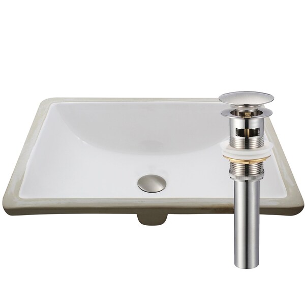 Rectangular Undermount White Porcelain Sink with Brushed Nickel Drain Set