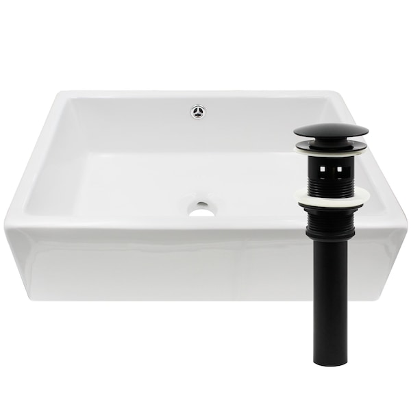 Rectangular White Porcelain Sink Set with Matte Black Drain and Sealer