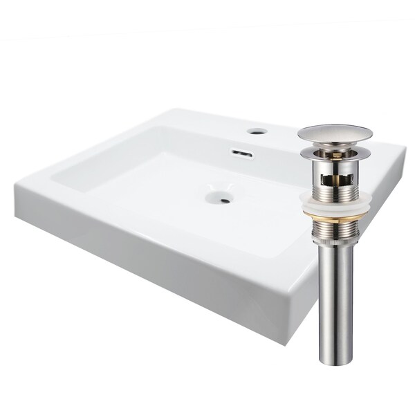 Rectangular White Porcelain Sink with Pre Set Fauce Hole and Brushed Nickel Pop-up Drain (Discontinued)