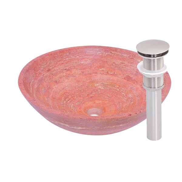 Made with nature as both guide and inspiration, Novatto's red travertine vessel will add character and charm specific to your bath. Our travertine vessel sinks come from around the world to provide you with a one-of-a-kind masterpiece. Natural stone cannot be compared to everyday synthetic porcelain and ceramics. Honed and hand polished to perfection, this beautiful 17-inch vessel will become the centerpiece of your bathroom. Red travertine is very consistent and little variation should occur from sink to sink. These sinks are designed for above-counter installation with standard U.S. plumbing connections. For best cleaning results, a soft cloth with mild soap and water or a non-abrasive glass cleaner is recommended. A stone sealant should be used to help protect the surface and allow for easier cleaning. Included with the sink is Novatto's umbrella drain (UPD-BN), constructed of solid brass for strength and durability. Finished in brushed nickel, the drain assembly has two rubber seals, a plastic spacer, and brass fastener. Novatto strives to provide superior products with exceptional qualities and unique innovations that professionals and homeowners trust.
