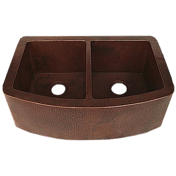 REDONDEADO Copper Curved Double Bowl Kitchen Sink, Antique