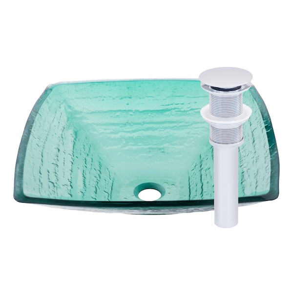 Add a bold focal point to any bath with this premium light green square glass vessel from Novatto! The Sauna is a single layer square vessel fused with a textured melted bottom. This unique vessel will add a sophisticated look and splash to any bath. As an industry leader in glass vessels, Novatto uses advanced technology to produce beautiful glass vessel sinks with unmatched structural integrity and longevity. Tempered glass cannot be compared to everyday synthetic porcelain and ceramics. Internal testing has found these vessels to be very durable and forgiving. Made with the highest standards of quality and creative design, Novatto sinks add art and function to any bath or powder room. This sink measures 17-inches square and has a standard 1.75-inch drain opening. The set includes a chrome pop-up drain.
