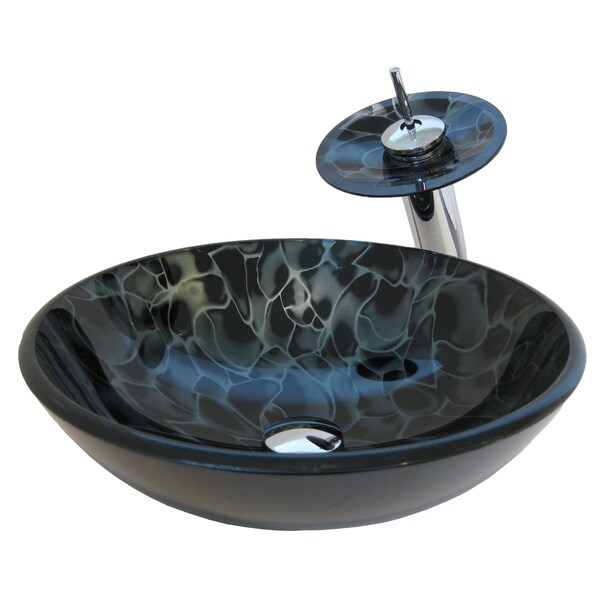 Enhance and harmonize your bath with Novatto's hand painted glass vessel and matching chrome waterfall faucet. The Tartaruga vessel features a bold hand-painted tortoise shell design of black and silver. Novatto uses advanced technology, including computerized glass processing and Italian furnaces, to produce glass basins of unmatched structural integrity. This vessel sink and faucet combo is a great way to harmonize the decor by unifying the color and textural design of your bathroom. The matching faucet disc directs the water flow into a graceful waterfall. When a bath demands superior design and quality, Novatto's glass vessels add that touch. Each glass sink and faucet features its own beauty of color, structural character and texture, adding a sense of purity, elegance and distinctive look to any design.