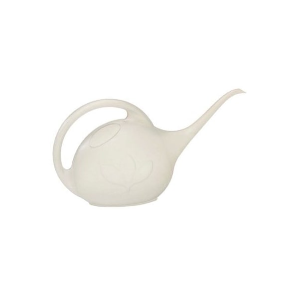 Novelty 12 gallon pearlescent white watering can features 1 large fill hole and a comfortable handle Sized for indoor use with extra long spout for hard to reach or high houseplants Made from recyclable plastic