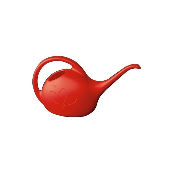 Novelty 12 gallon red watering can features 1 large fill hole and a comfortable handle Sized for indoor use with extra long spout for hard to reach or high houseplants Made from recyclable plastic