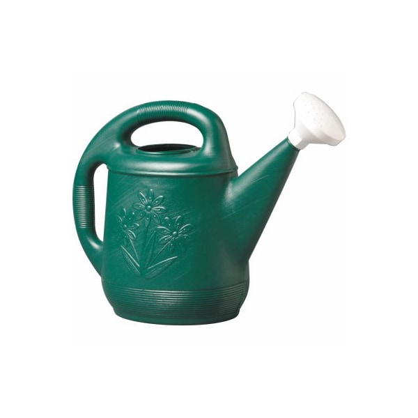 Novelty 2 gallon green classic watering can has 1 large fill hole and 2 comfortable handles that are designed for ease and comfort Large capacity for outdoor use and made out of recyclable plastic Includes 1 white nozzle