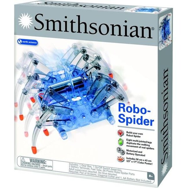 Official Smithsonian Licensed Robo-Spider, Build your own Spider. Eight Multi-jointed Legs duplicate the Walking movement of real spiders. Motorized and Battery Operated