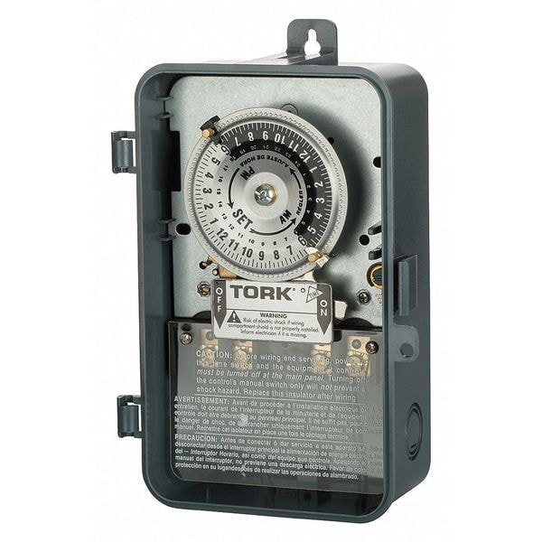Electromechanical Timer, 24 hr, Number of Poles 1, Contact Form SPST-NO, Voltage 120V AC, Amps 40, Contact HP @ 120V 2, Contact HP @ 240V 5, Day Skipper No, Enclosure Type Plastic, Finish Polycarbonate Enclosure Gray, NEMA Rating 3R, Min. Time Setting 20 min, Max. Time Setting 22 hr 45 min, Max. On/Off Cycles 12, Width 5 1/16 in, Depth 3 1/16 in, Height 8 5/16 in, Number of Trippers Included 2, Operating Temp. -40 Degrees to 165 Degrees F, Description/Special Features Listed for LED Drivers