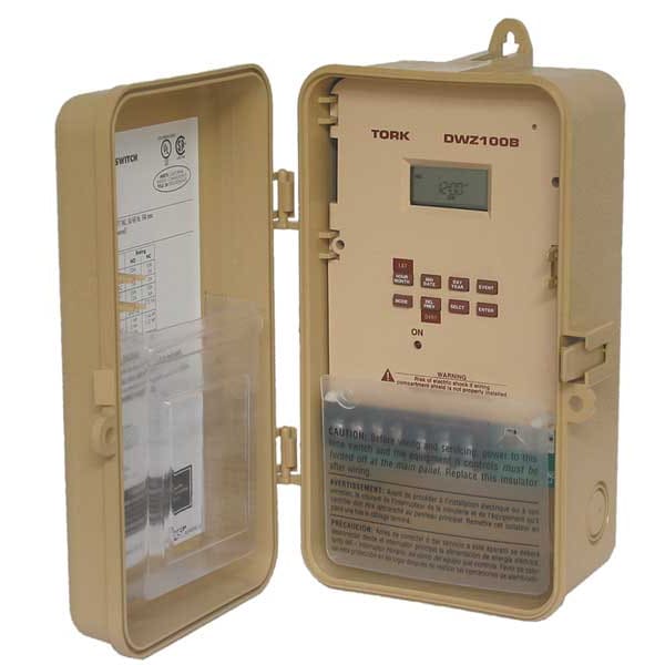 Electronic Timer, Operation Mode Astro 365 Days, Number of Channels 1, Contact Form SPDT, Voltage 120 to 277V AC, Amps 20 A, HP @ 120V 1, HP @ 240V 2, Events Available - Electronic Timer 99, Available Actions - Electronic Timer On/Off, Event Allocation - Electronic Timer 1 On/Off Action = 2 Events, Enclosure Plastic, Mounting Surface, Number of Poles 1, Min. Time Setting 1 min, Max. Time Setting 365 day, NEMA Rating 3R, Color Tan, Backup Device Capacitor, Backup Time 7 day