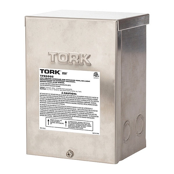 Pool Light Transformer, Input Voltage 120V AC, Output Voltage 12V AC, 13V AC, 14V AC, Max. Wattage 300 W, Enclosure Material Stainless Steel, Color Silver, Height 7.2 in, Width 5.1 in, Depth 4.2 in, Standards CSA Approved Class II, NEC Article 680.23, UL Listed