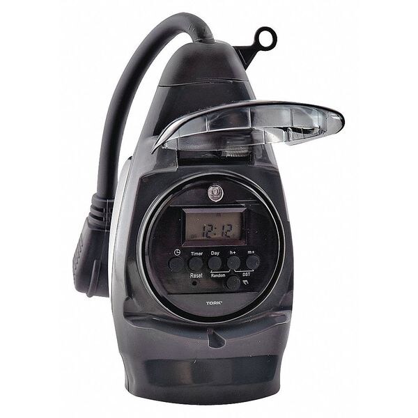 Plug-In Timer, Digital, Min. Time Setting 1 min, Max. Time Setting 7 days, Max. On/Off Cycles 7, Voltage 120V AC, Watts 1000, Amps 15, HP @ 120V 1/2, Type of Switch Digital, Outdoor, Receptacles 2, Receptacle Type (2) 5-15R, Color Gray, Length 6 in, Width 1 5/8 in, Depth 3 1/8 in, Style Plug In, Features Photocell, Standards cULus