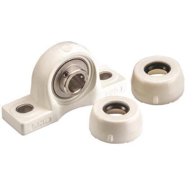 Pillow Block Bearing, Base Height 0.57 in, Bearing Insert Material Stainless Steel, Bearing Insert Type Radial Ball, Bore Diameter 1 in, Bore Type Cylindrical, Center Height 1 27/64 in, Closure Double Sealed, Housing Material Polymer, Lubricant Material FDA/USDA-H1 Solid Grease, Maximum Temperature 212 Degrees F, Minimum Temperature -4 Degrees F, Mount Hole Center-to-Center Length 4 1/8 in, Mount Type Bolt-Through, Number of Mount Holes 2, Overall Height 2.781 in, Overall Length 5.5 in
