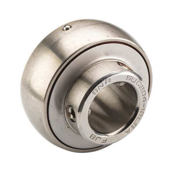 Insert Bearing, Ball Material Alloy Steel, Bearing Industry Number SUC206-20FG1, Bearing Insert Type Radial/Deep Groove Ball, Bearing Insert Shape Spherical, Bore Diameter 1 1/4 in, Closure Double Sealed, Lubricant Material Non-Relubricatable, Maximum Speed 3,100 RPM, Maximum Temperature 250 Degrees F, Minimum Temperature -4 Degrees F, Outer Ring Width 0.748 in, Outside Diameter 2 7/16 in, Plain Bearing Material Stainless Steel, Ring Material Stainless Steel, Rolling Element Material Alloy Steel