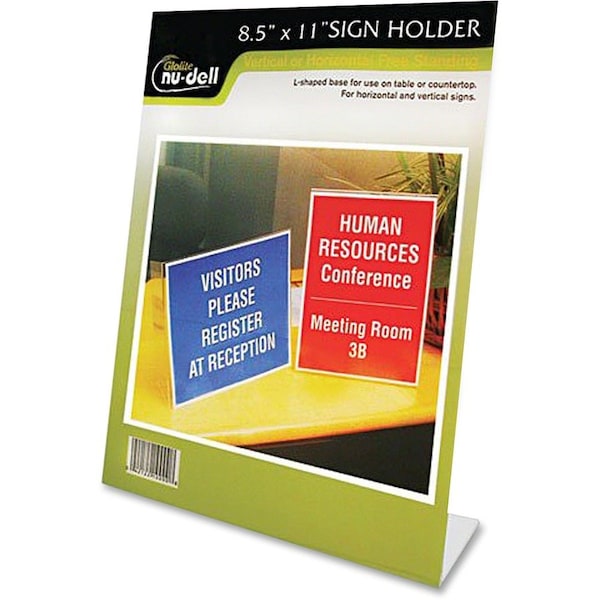 Stand-Up Sign Holder, Slanted, 8-1/2"x11", Plastic, Clear