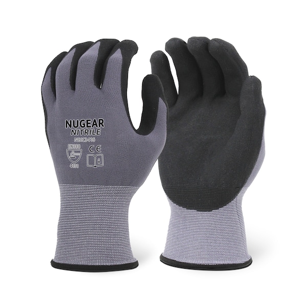 15 GAUGE Seamless Gray Nylon / Spandex Shell with Premium Black Microfoam Nitrile Coated Palm And Fingers Size: M (Dozen)