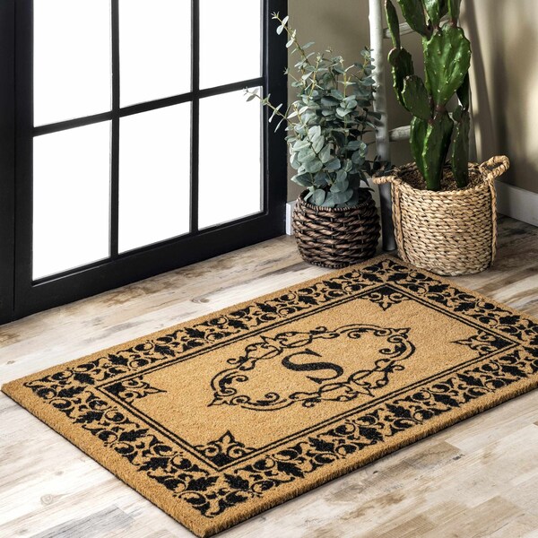 Made of 100% Coir in India, this doormat is extremely durable and built to withstand outdoor weather and frequent foot traffic. The coarse coir material can be used to scrape bottom of shoes to minimize dirt inside your home. Personalize your entrance by choosing from any of the unique monogram options.