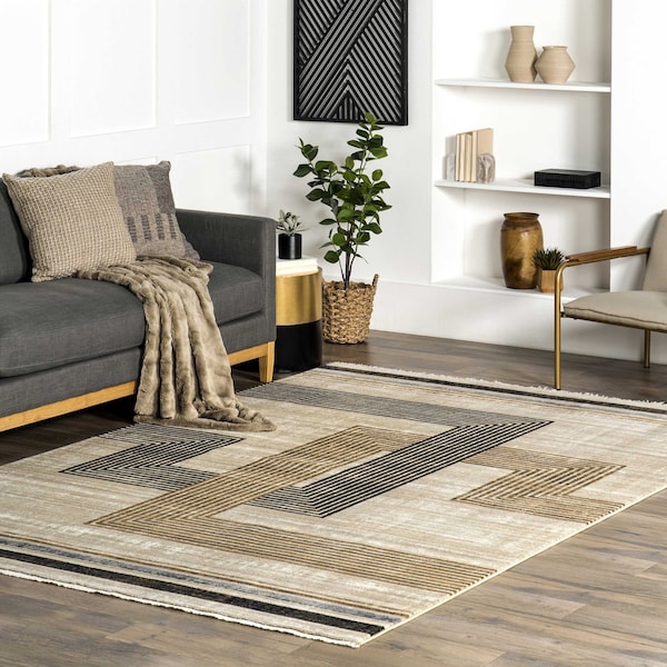Aline Contemporary Striped Fringe Area Rug 8ft 10in x 13ft