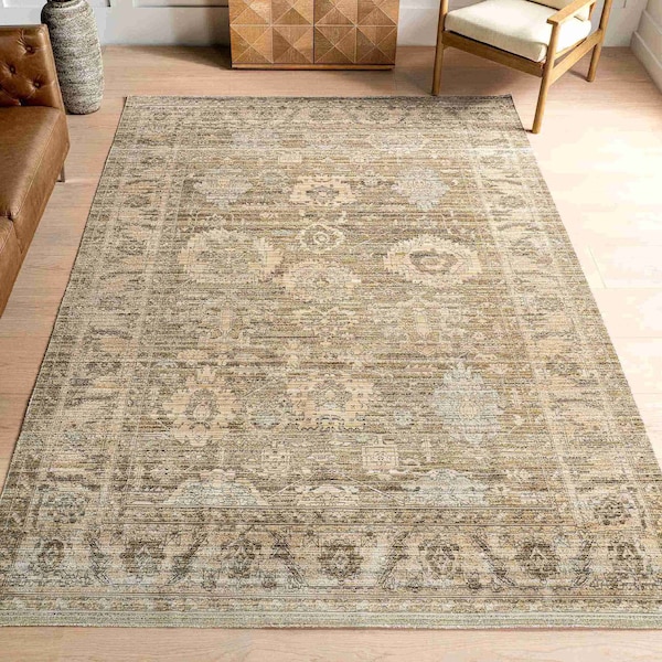 Crafted from 100% polyester, this medallion patterned rug is both soft and durable, offering a comfortable yet resilient surface for various areas in your home. Its high durability, along with being kid friendly and pet friendly, machine washable, and stain resistant, makes it a versatile and practical choice for spaces like the bedroom, living room, dining room, hallway, kitchen, and even outdoor patios. The polyester construction ensures easy maintenance and long lasting quality, perfect for busy households seeking a blend of style and functionality in their rugs. Whether placed in a cozy bedroom or a bustling kitchen, this rugfts combination of softness, durability, and easy care makes it a reliable and stylish addition to any room. Embrace both comfort and resilience with this medallion rug, designed to withstand everyday use while adding a touch of elegance to your living spaces.
