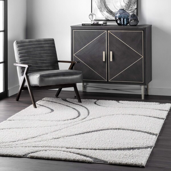 Add a sense of luxury and sophistication to your home with our modern shag area rug. This floor covering has a beautiful high/low weaving pattern with neutral color hues that will blend seamlessly with any existing style. Crafted from durable synthetic fibers, this rug will be a trusted piece in your home. Create the home of your dreams with our pet friendly and easy to care for area rugs.