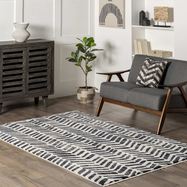 Elly Transitional Herringbone Fringe Area Rug 4ft x 6ft 5in (Discontinued)