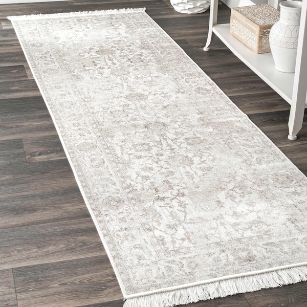 Bring a sense of elegance to your home with this vintage floral area rug. Made from 100% viscose, this floor covering has a lavish sheen with fringes lining each end. With neutral color hues, this rug pairs perfectly with any of your existing style from traditional to bohemian and is sure to be the centerpiece of any room its placed in. Create the home youve always dreamed of with our easy to care for and pet friendly area rugs.