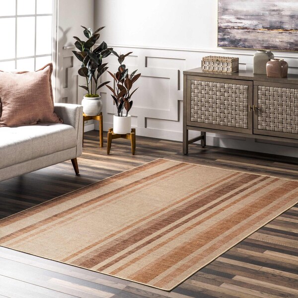 Elza Striped Easy-Jute Machine Washable Area Rug 4ft x 6ft