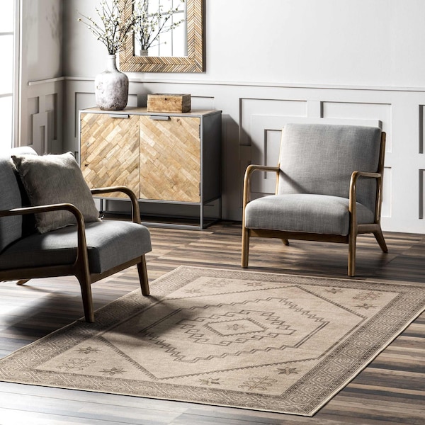 Hilda Medallion Easy-Jute Machine Washable Area Rug 5ft x 8ft