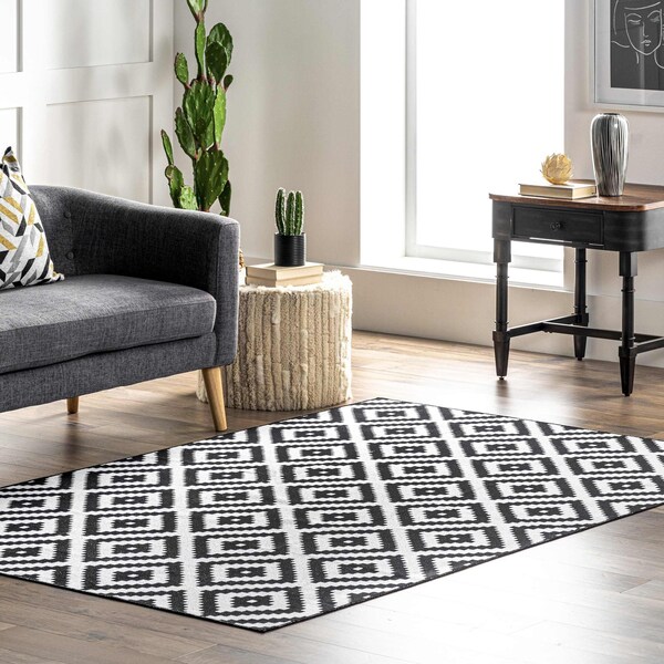 - These rugs look sleek and sophisticated, with a flat pile and integrated non-slip backing. This allows for convenient placement in entryways, near doorways, and underneath furniture