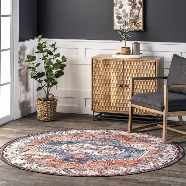 Marli Machine Washable Faded Medallion Area Rug 6ft (Discontinued)