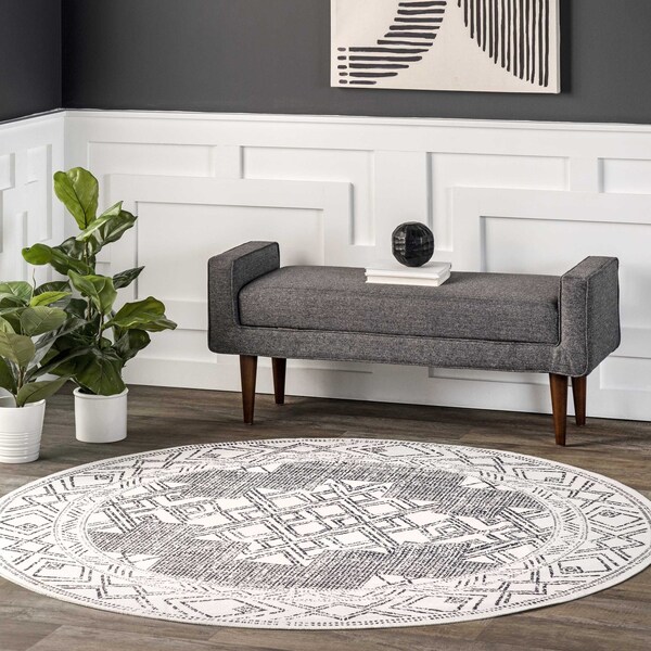 Mia Machine Washable Geometric Medallion Area Rug 8ft (Discontinued)