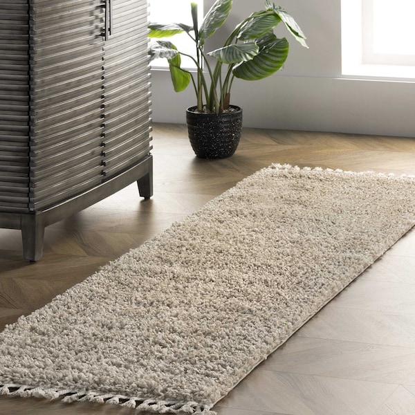 Neva Modern Tasseled Shag Area Rug 2ft 6in x 12ft