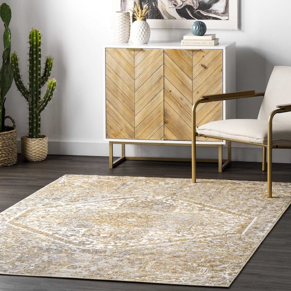 Complement your traditional living room with this interesting area rug. Featuring floral and medallion patterns, this durable, synthetic rug lends your room dimension and exudes a vintage aura. This rug will pair seamlessly with any style from traditional to bohemian. Create the home of your dreams with our easy to care for and pet friendly area rugs.