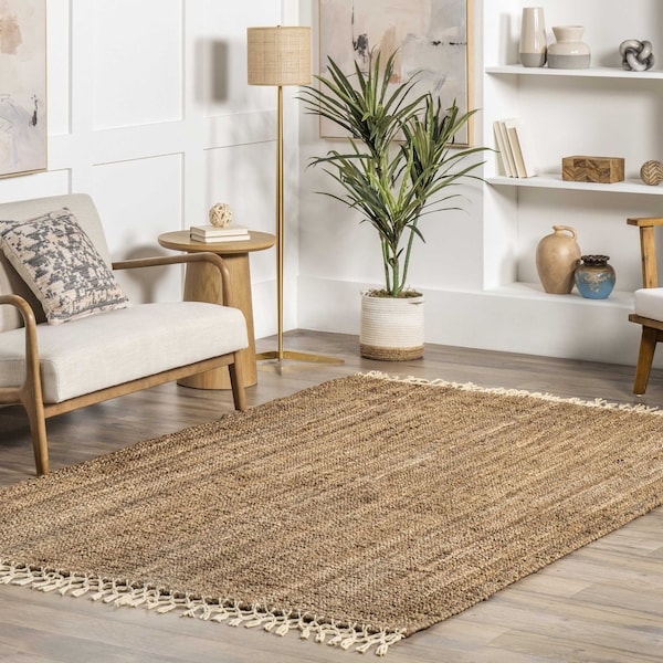 Raleigh Farmhouse Jute Tasseled Area Rug 8ft x 10ft