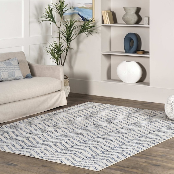 With a herringbone style design, this transitional striped area rug will be the finishing touch youve been looking for. Made of soft durable fibers, this rug will hold up in high traffic areas of your home while remaining soft underfoot. With subtle color hues, this floor covering will pair seamlessly with any of your current style from modern to bohemian. Enjoy every space in your home with our pet friendly and easy to care for area rugs.