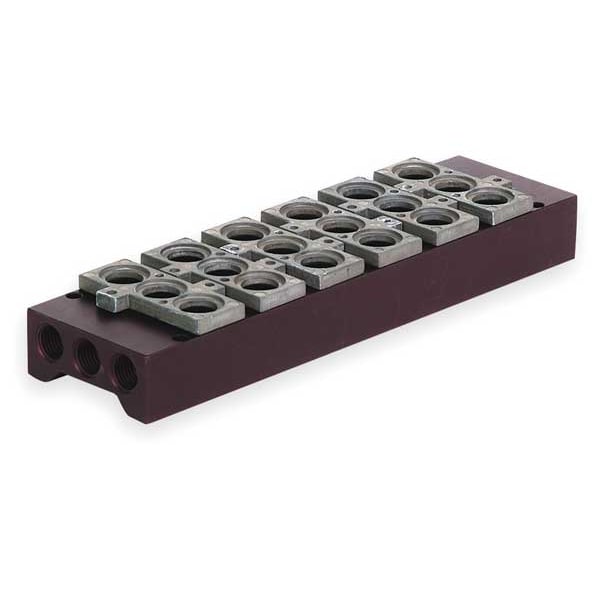 Manifold Assembly, For Use With L1 Series Valves, Number of Valve Stations 6, Valve Port Size 1/4 in, Cv 1, Solenoid Valve Manifold, L1 Series, Length (In.) 8 7/16 in, Width (In.) 2 5/16 in, Height (In.) 1 in, Includes Valve Mounting Hardware