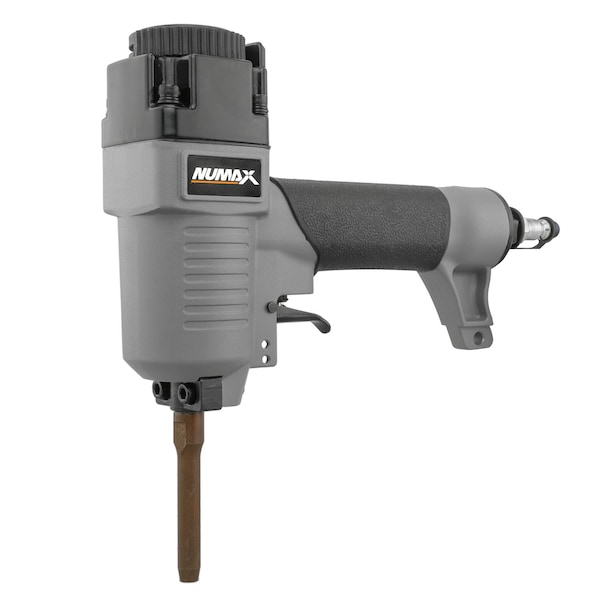 The NuMax SPNNR Pneumatic Punch Nailer / Nail Remover is specifically designed for punching straight or bent fasteners out of wood in order to reclaim and repurpose the material. Compatible with nails from 9 to 14 gauge, this air powered punch nailer will remove nails fast and easy while maintaining the quality of the wood in order to be able to reuse the demolition material for other projects. The ergonomically engineered body is constructed of high strength aluminum, resulting in a lightweight and rugged tool great for use during long shifts. A one piece drive blade of hardened steel adds to the strength and durability of this powerful tool. The comfort grip handle reduces fatigue and increases control, and a 360 degree adjustable exhaust allows the air to conveniently be directed away from your face. An air filter / anti-dust cap protects internal components by keeping them free from debris and extending the life of the tool. The Pneumatic Punch Nailer / Nail Remover is a must-have for DIYers as well as professional construction contractors who reclaim wood in order to reuse