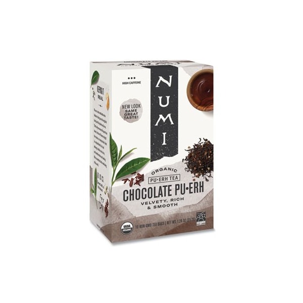 Numi is committed to ethical and sustainable sourcingfor all. Natural hemp-based Non-GMO tea bags are filled with full leaf quality tea made from 100% real ingredientsno added flavorings or fragrances. Beverage Type: Tea; Flavor: Chocolate Puerh; Packing Type: Filterbag; Capacity Weight: 1.13 oz.