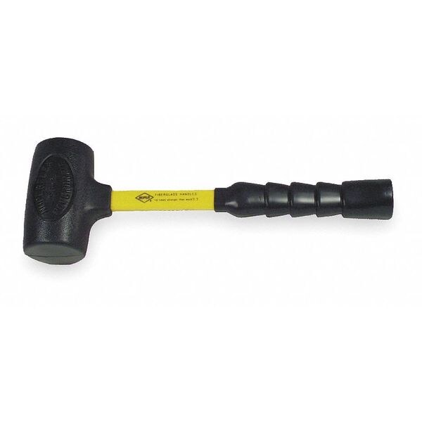 Dead Blow Hammer, Head Material Polymer over Composite, Head Weight 14 oz., Face Diameter 1 1/2 in, Handle Material Fiberglass with Nonslip Grip, Overall Length 12 1/2 in, Tether Style Tether Capable, Nonsparking No, Replaceable Tip No, Handle Color Yellow, Head Color Black, Head Length 4 in