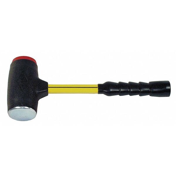 Dead Blow Hammer, Head Material Polymer over Composite with (1) Steel Face, Head Weight 14 oz., Face Diameter 1 9/16 in, Handle Material Fiberglass with Nonslip Grip, Overall Length 12 1/2 in, Tether Style Tether Capable, Nonsparking No, Replaceable Tip No, Handle Color Yellow, Head Color Black, Head Length 4-1/2 in