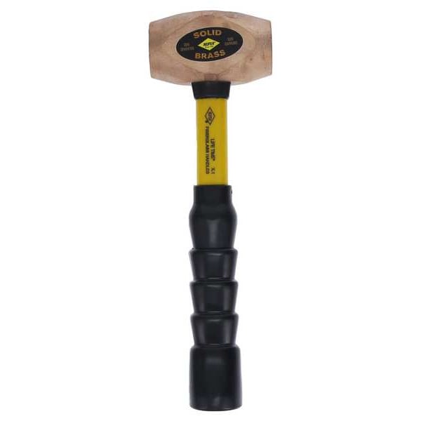 When you need to get the job done, bring along this NUPLA 6894176 Sledge Hammer. Its long handle and hefty head ensure that you can apply maximum force with minimal effort. The fiberglass handle is very durable and absorbs shock for your comfort. The sledge hammer's head has a diameter of 1 3/4 in., which makes it easy to drive nails into surfaces. This nonsparking sledge hammer has a head weight of 3 1/4 lb. and an overall length of 12 in.. It also has a brass head, with a yellow handle color that offers good grip even when wet or oily. The NUPLA 6894176 Sledge Hammer is the powerful tool you will want on hand for heavy duty jobs around the house or at work.