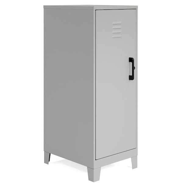 The versatile design of this personal locker makes it suitable for office and home use. Stylish, modern look will fit right in with your offices, classrooms, playrooms, basements and garages. The SOHO Locker adds a cool, industrial touch to your space. Sturdy and durable, welded steel construction provides long-lasting strength. Recycled content makes it an eco-friendly choice. Nonporous surface is easy to clean and disinfect. All you need is a damp cloth. Hinged door and a locking mechanism keep your belongings safe. Vented locking door allows airflow while protecting your privacy. Three built-in shelves are perfect for stashing schoolwork, organizing work supplies and putting away sporting equipment, toys and games. Each shelf can support up to 40 lb. to meet all your different needs. Built-in risers keep storage locker off your potentially damp floor. Locker ships fully assembled so you can get organized right away.