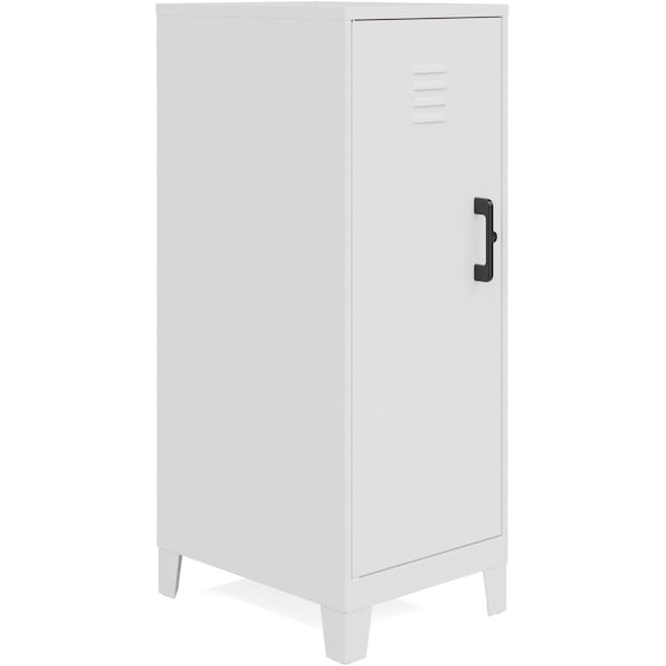 The versatile design of this personal locker makes it suitable for office and home use. Stylish, modern look will fit right in with your offices, classrooms, playrooms, basements and garages. The SOHO Locker adds a cool, industrial touch to your space. Sturdy and durable, welded steel construction provides long-lasting strength. Recycled content makes it an eco-friendly choice. Nonporous surface is easy to clean and disinfect. All you need is a damp cloth. Hinged door and a locking mechanism keep your belongings safe. Vented locking door allows airflow while protecting your privacy. Three built-in shelves are perfect for stashing schoolwork, organizing work supplies and putting away sporting equipment, toys and games. Each shelf can support up to 40 lb. to meet all your different needs. Built-in risers keep storage locker off your potentially damp floor. Locker ships fully assembled so you can get organized right away.